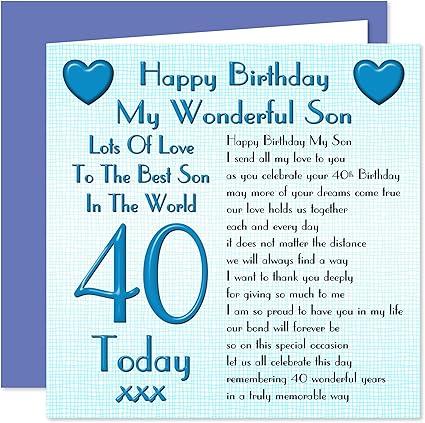 456 Make them feel especially loved by sending them one of our personalised Son 40th Birthday cards.
